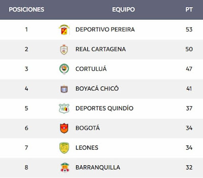 | 8 | Deportes Quindío | 4 | 3 | 1 | 1 | 1 | 5 | 3 | +2 |